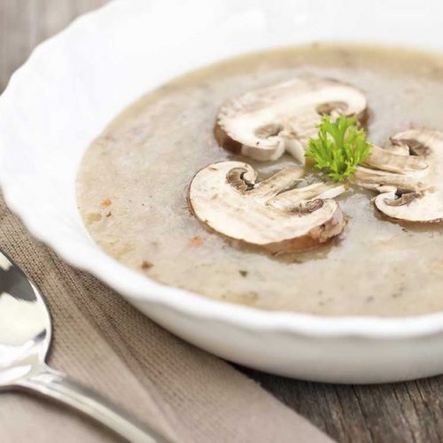 ¿Con qué acompañar la crema de champiñones? Las cremas así solas ya están deliciosas, pero es verdad que podemos darle un toque de gracia o un extra a nuestro plato acompañándola de algunas cosillas. Por ejemplo: Picatostes o croutons: es el clásico de las cremas y podemos encontrarlos ya preparados en cualquier supermercado y panaderías con sabor tradicional (es decir, sólo el pan) o también con sabor a ajo, cebolla, perejil o jamón. Pero, por supuesto, podréis prepararlos en casa y además, será una manera estupenda de aprovechar el pan del día anterior. Tan sólo tendremos que cortar nuestro pan en daditos pequeños y preparar un majado de ajo, perejil, sal y aceite (o también sólo aceite). Pincelamos nuestros picatostes y los horneamos unos 10-15 minutos a 180º (cuidado que no se quemen!!). Pollo: el pollo y los champiñones, realmente combinan muy bien. Así que si tenemos pollo asado o cocido de otro plato anterior, como pollo al horno,a la plancha o pollo del cocido, es una opción perfecta para alegrar nuestra crema de champiñones. Lo cortamos en daditos, le echamos por ejemplo sal y cominos si está un poco soso y ¡a disfrutar! Crujiente de jamón o de puerro: podemos cocinar al microondas taquitos de jamón o tiras de puerro con un poco de aceite y siempre entre dos hojas de papel de cocina para tener jamón, bacon o puerro crujiente. También podemos freirlo en abundante aceite o incluso hornearlo.