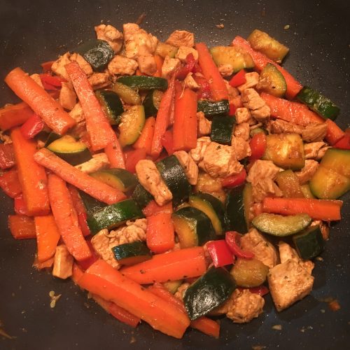 Pollo al wok con verduras