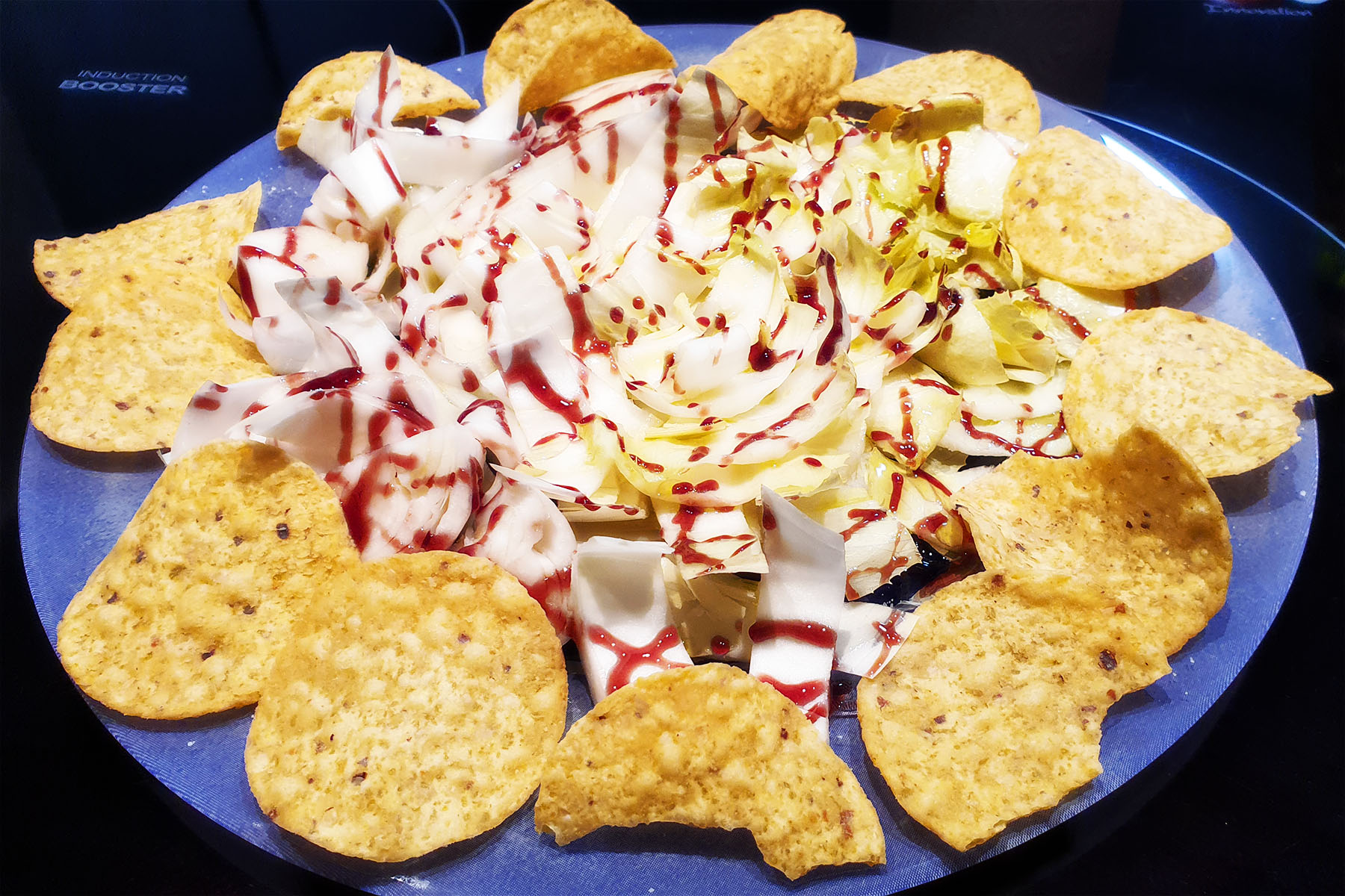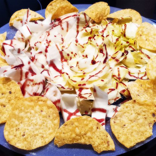- Cortar la endivia en trozos medianos y colocar en plato, a ser posible todos los trozos en una altura.