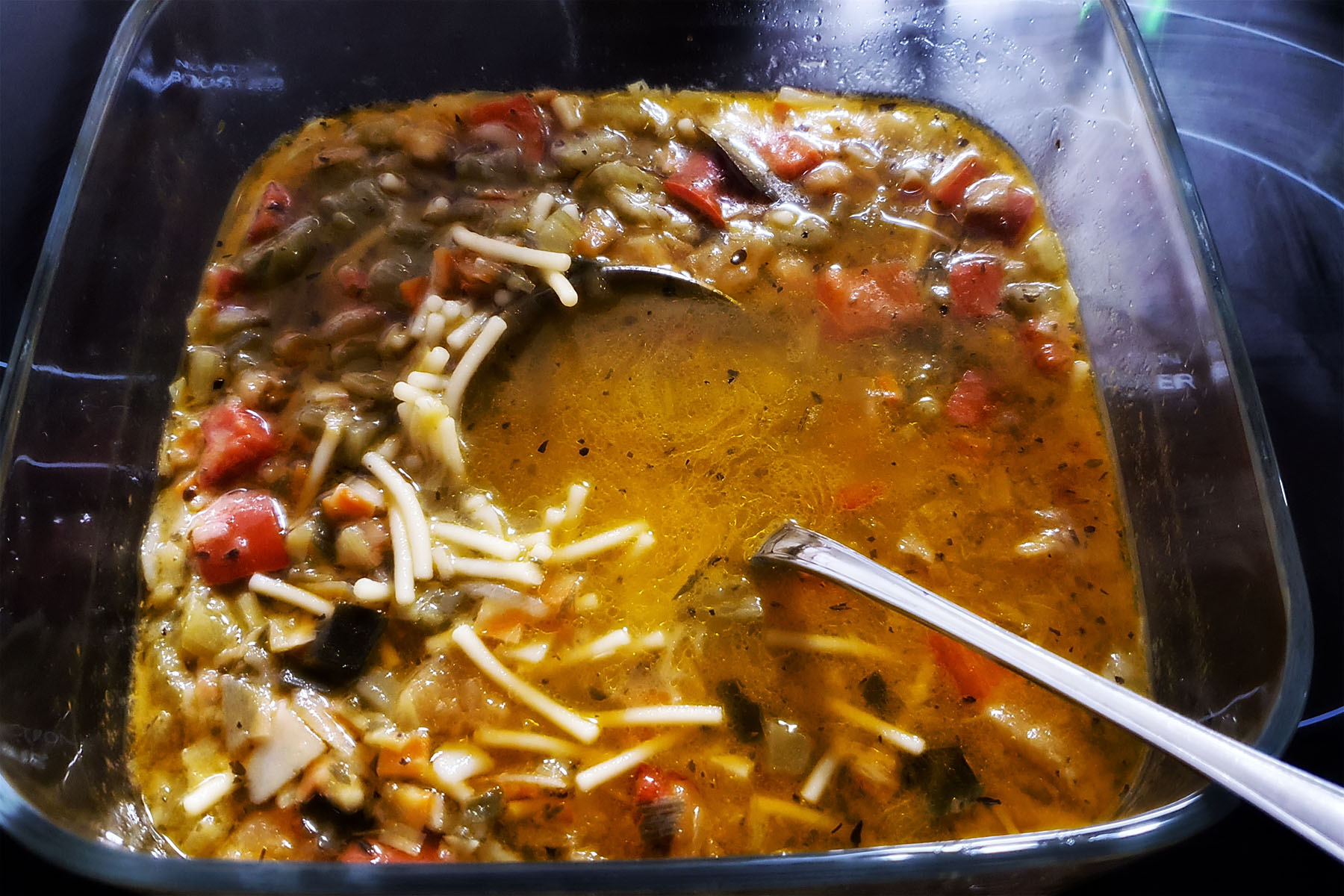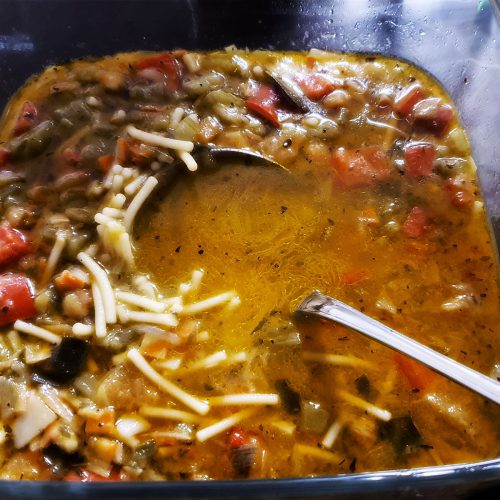 - El troceado inicial, hay días que lo dejo en trozos, otros casi trituro, va a cambiar lo espeso que este el caldo y como se mezcla el sabor al tomarlo, cuanto más triturado más uniforme es el sabor, con el troceado variara en función de que nos toque en cada cucharada.