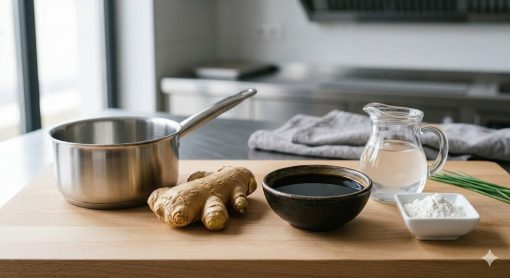 Esta salsa es una lección de ligazón técnica. A diferencia de una velouté clásica francesa que usa mantequilla y harina (roux), aquí utilizamos el agua de cocción de los vegetales y maicena para lograr una salsa traslúcida, ligera y libre de grasas. El jengibre aporta un aroma punzante y propiedades termogénicas, mientras que la soja proporciona el Umami (el quinto sabor), capaz de potenciar cualquier ingrediente humilde. Es la técnica ideal para realizar un lacado o un glaseado brillante sobre carnes y verduras.