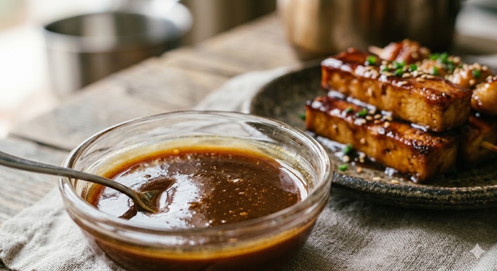 - Por qué: Los bloques de tofu o seitán son organolépticamente neutros. Esta salsa utiliza la técnica del glaseado por reducción para que el umami de la soja penetre en la porosidad de la proteína vegetal, transformando un ingrediente insípido en un bocado complejo y sabroso.