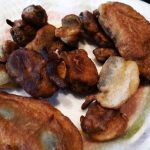 Rebozar los trozos de encurtido en la masa y freír con abundante aceite de girasol.