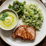 Lomo Glaseado con Arroz Esmeralda y Crudo de Pimiento